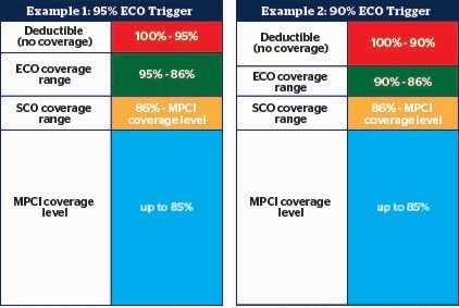 - ECO can trigger an indemnity on only a 5% loss in revenue or yield (dependent on the underlying MPCI coverage plan)