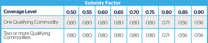 The subsidy factor for WFRP makes it a very affordable policy. The amount of the subsidy factor is based on the commodity count calculation indicating the amount of farm-level diversification of revenue had by a farming operation.